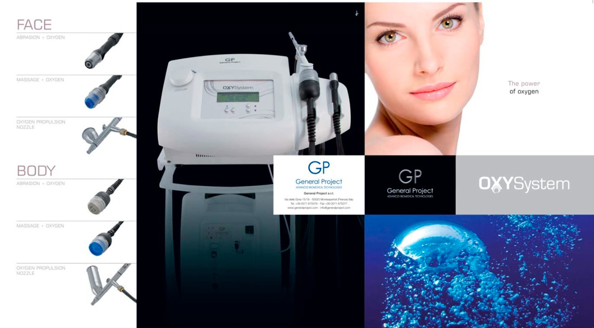 Oxy System is the new oxygen therapy system to treat face and body, which combines oxygen propulsion with microdermabrasion and connective massage. Oxygen at high purity degree increases blood spraying, improves cellular metabolism and stimulates collagen production by fibroblasts, thus accelerating skin repair processes. This complete, reliable, safe and effective equipment offers a wide range of treatments.